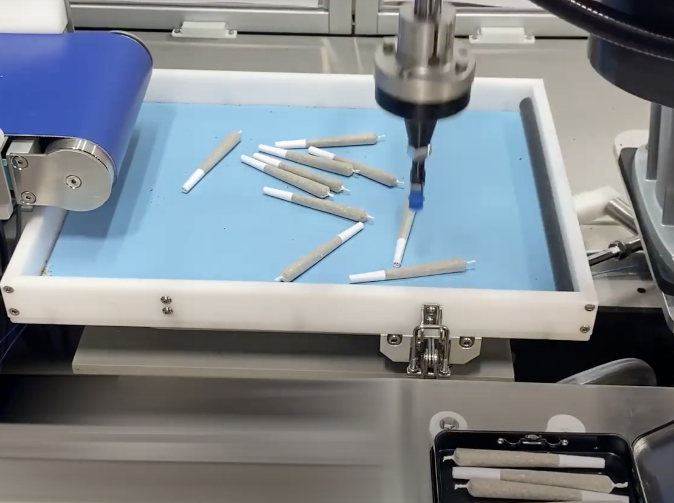 The JuanaPack is an automatic rotary filling and packaging system engineered for loading and orienting pre-rolls into rigid packages. The machine automatically indexes tubes and / or trays, orients the pre-roll, fills and indexes, ensuring a smooth and efficient operation. Labeling, robotics, capping, multi-fill are just some of the configurable options available.